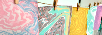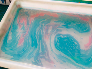 The technique requires that the artist be patient, and carefully observe the movement of the inks on water. This activity let students slow down and focus only on the movement of the floating colours. Suminagashi is an excellent activity for promoting stress relief and meditation.