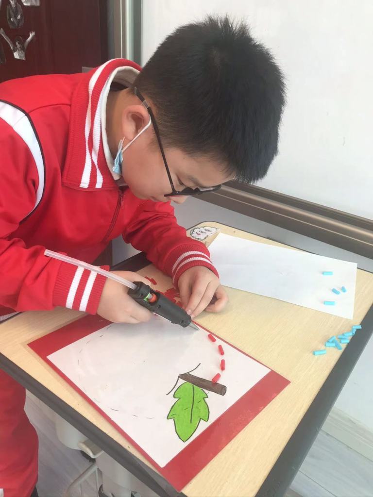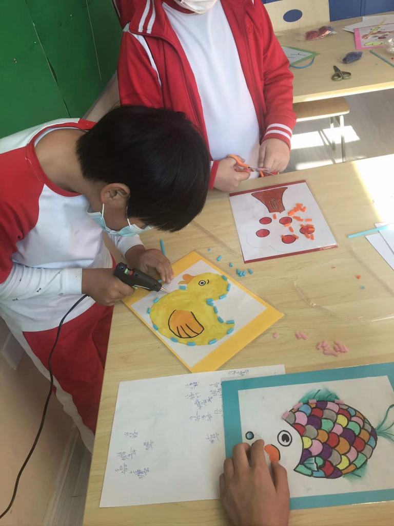 We thought of an idea that we could do something for someone else. We decided to make an activity for the Kindergarten students. In our art lessons, the Grade 5s chose a picture that they coloured in but left out the outline of the picture. Using a glue gun, they then stuck colourful straws where the outline should be.