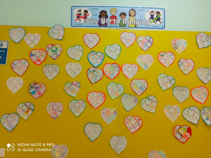 In PYP, we set up a collaborative activity within Kindergarten, Grades 1, 2, 3, 4 and 5. The purpose of this collaboration is to get our students aware about the importance of standing up against bullying situations.