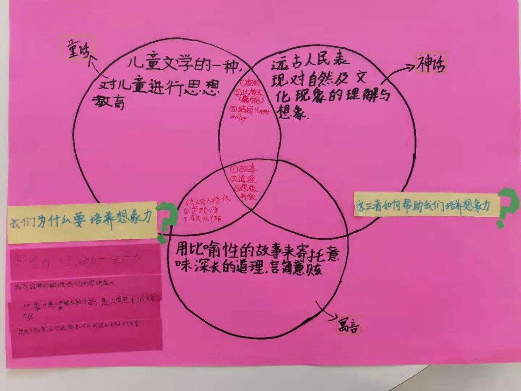 In the process of exploration, the students found that, just like the overlapping of three primary colors in art class, genre and genre are also overlap. To a certain extent, fairy tales, myths and fables all have rich imagination, fantasy and exaggeration!