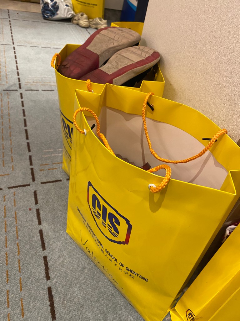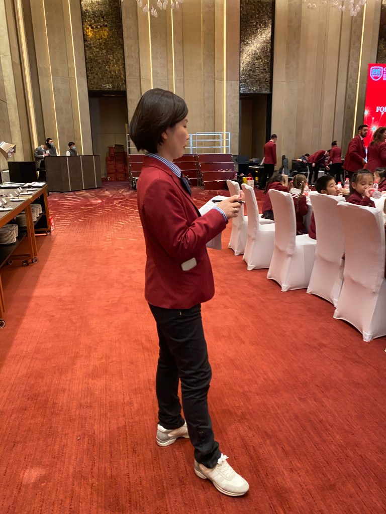Before arriving at the hotel, while the children and teachers were at school, the army arrived at the Conrad hotel. The army consisted of all the Chinese staff that our executive director Madame Duan arranged. They were chosen specifically to ensure that everything went perfectly and that all the families and their children were taken care of as they deserve. Finally, they were their to help the teachers – leaving instruments, costumes, and accessories in the right places, and preparing the welcome tables. They did this all spectacularly well, and always with a smile. Here is my little tribute to those men and women who make our school a welcoming place every day where children and teachers go happy to work.