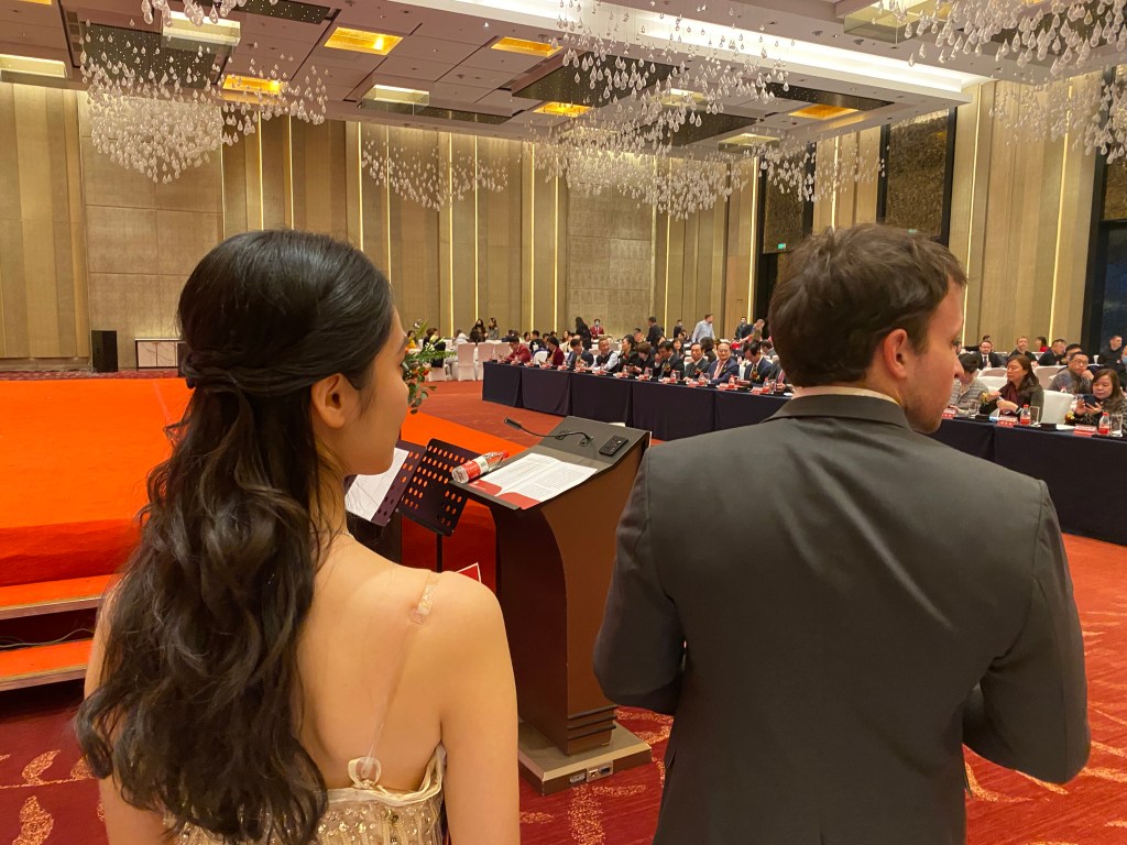 The masters of ceremony – Ms. Zhang and Mr. Steinberg were ready. They have plenty of talent and a great disposition. It did not matter if they were wearing a gold dress and a suit or the school uniform, like any superhero, they were ready and prepared like good professionals at all times.