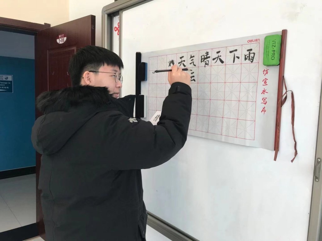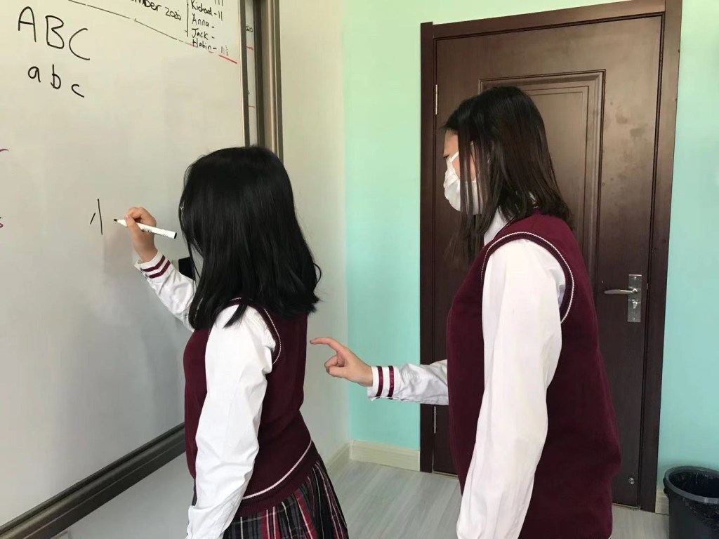 One of these ways is through a variation of broken telephone. One student stands at the board with a board marker at the ready. Another student stands behind this student with their finger at the ready. The student behind draws a Chinese character on the student-in-front’s back, who then needs to write the character on the board. This allows the students to not only practice their writing skills, but thinking skills too.
