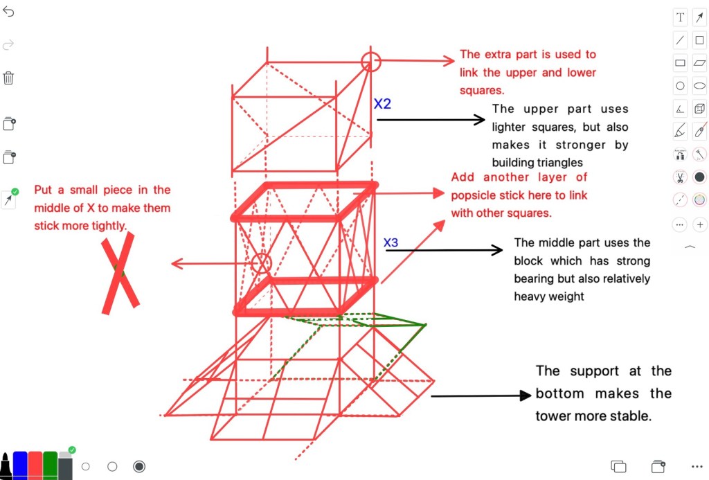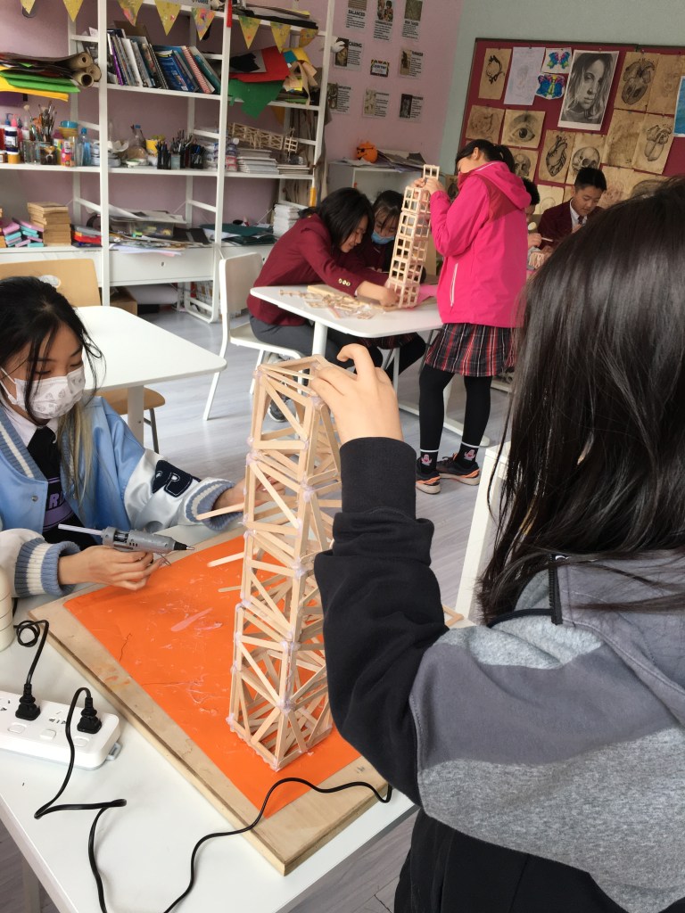 The design classes were full of excitement and energy as the students worked in teams to build their towers. The process was slow and meticulous, but everyone was fully engaged in the construction phase. It was up to the students to build. a tower that would be both balanced and strong.