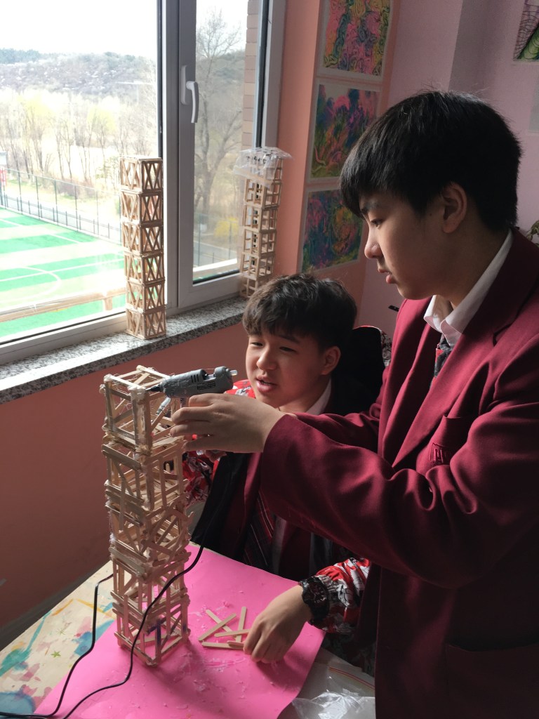 Anticipation was buzzing in the halls in the morning of April 21st; it was the day of the Tower Design Competition. All MYP students were competing in the same design challenge, to build the strongest 50cm tall freestanding tower from only 250 popsicle sticks and hot glue. After months of researching, planning, and building, it was finally time to find out which tower was the strongest.