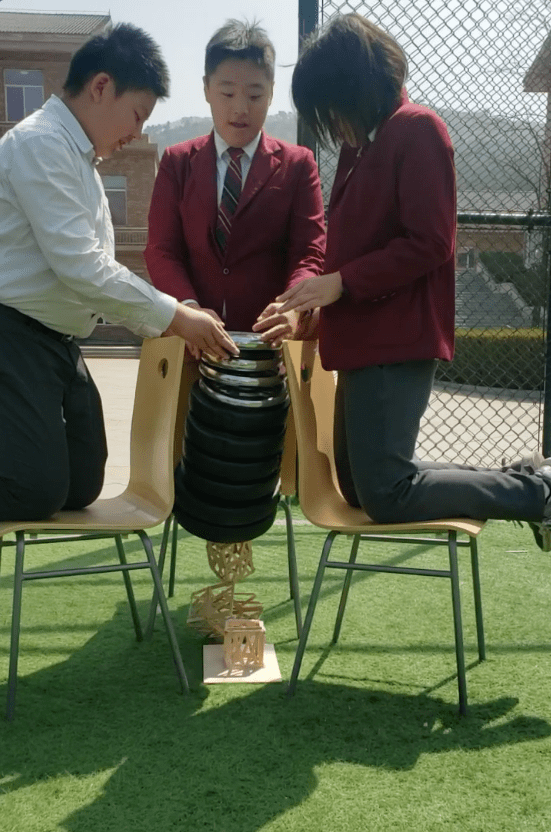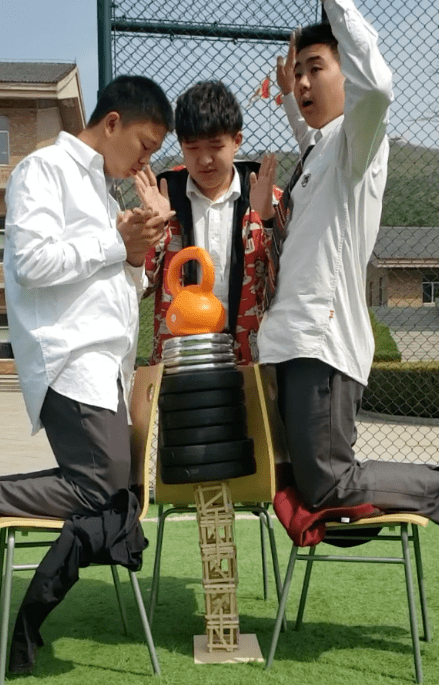 In the end, three teams had tied for first place in the competition. Their towers were so strong that they could not be broken with the 62.5 Kg of weights that were used.