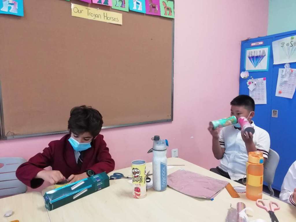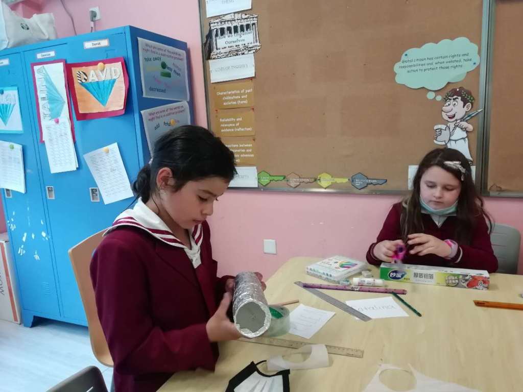 Pictures show Grade 4 students at CISS currently studying the ancient Greeks, make their own pinhole camera using materials we all have at home. It was an easy way for them to understand how light travels and how we see things.